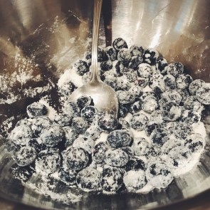 5. In a medium bowl, mix the blueberries, sugar, flour, and cornstarch, tossing with hands or a large spoon.