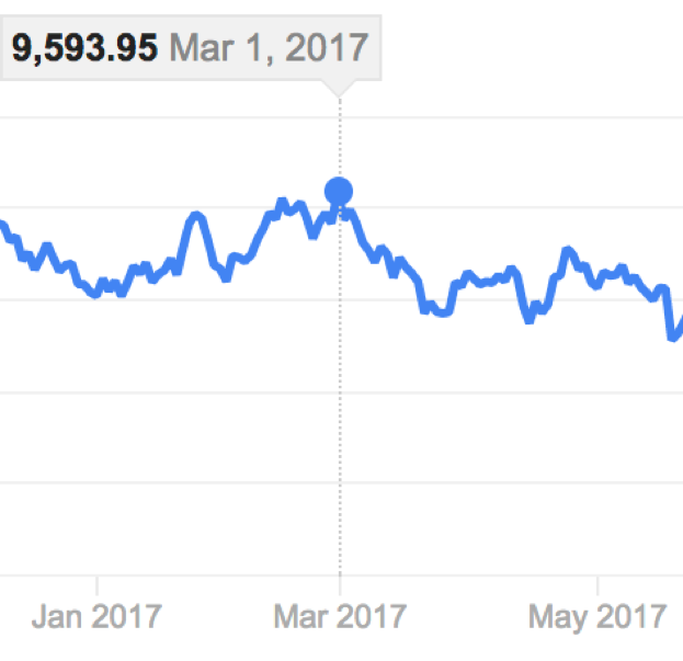 Both averages were in a sideways/descending stage in late 2014 through mid-2016. During mid to late 2016, they started rising. The two achieved a pinnacle of sorts in March 2017. The Industrials were around 21,125 and the Transports around 9,600. At that point, both moved downwards. This joint descending pattern drove Dow Theory believers to think about whether the market had entered another descending pattern, one that could go for a month or even years.