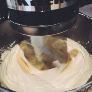 2. With the mixer on its lowest speed, stream in the glucose, corn syrup, and vanilla extract. Crank the mixer up to medium-high and beat for 2 to 3 minutes, until the mixture is silky smooth and a glossy white. Scrape down the sides of the bowl.
