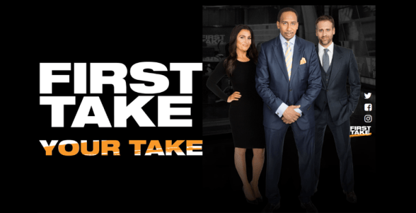 First Take is a show on ESPN, with Stephen A. Smith and Max Kellerman. They also usually bring in a guest or multiple guests, athletes, coaches, and analytics experts. There is always a topic for each video, usually relating to breaking news, reactions to an important event, or breaking down sports games from the previous day. Although both Stephen A. and Max are very knowledgeable in all sports, they specialize in football and basketball.
